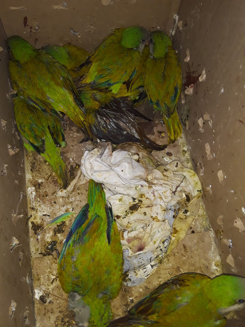 También una caja con ocho loros en su interior. De esta manera procedieron al secuestro de las pertenencias abandonadas.