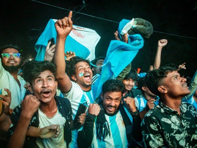 Las muestras de cariño por los triunfos de la Selección traspasan los 17 mil kilómetros de distancia, a través de las redes sociales, repletas de sorprendentes imágenes de cientos de bangladesíes reunidos mirando el partido o festejando los goles, vestidos con la camiseta albiceleste.