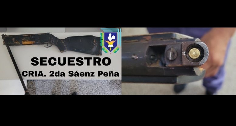 Por ello, procedieron a la conducción del joven y al secuestro del arma de fuego tipo aire comprimido modificada para proyectil 22 largo. Se dio intervención a la Fiscalia en turno.