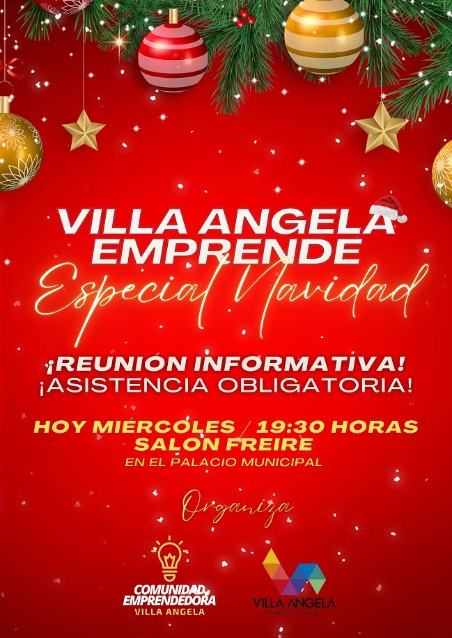 El Municipio de Villa Ángela invita a toda la comunidad a visitar la Feria Emprendedora especial Navidad la cual se llevará a cabo el domingo 18 de diciembre a partir de las 19:00 en el Espacio de Usos Múltiples ubicado en Av. La Plata y Alberdi.