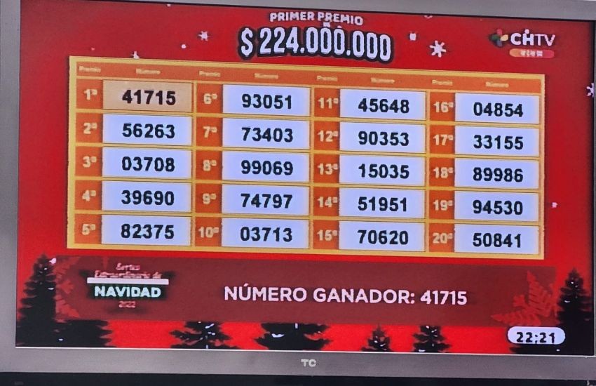 El 41.715 fue el número ganador del Sorteo Extraordinario de Navidad 2022 que se llevó a cabo esta noche en la sala sorteadora de Lotería Chaqueña. El cartón ganador fue asignado a las provincias de Neuquén y Jujuy, con un premio de 224 millones de pesos con duplicador, que en este caso correspondió al número 4.