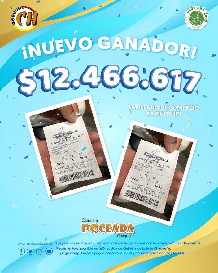 Un Empleado de Comercio Ganó Más de 12 Millones de Pesos con la Poceada Chaqueña