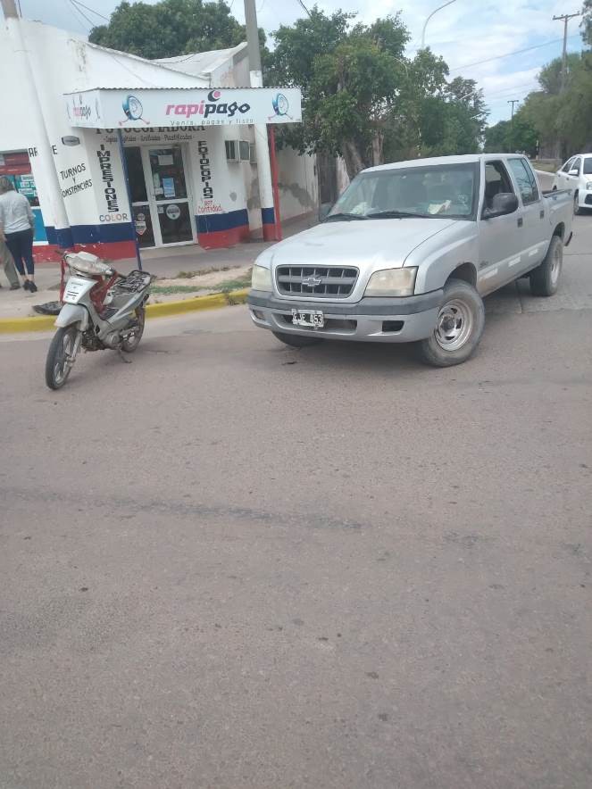 En el día de la fecha a las 10:00 horas en la esquina de calle La Pampa y Avenida 25 de Mayo, se produjo un nuevo accidente de tránsito entre una camioneta y una motocicleta.