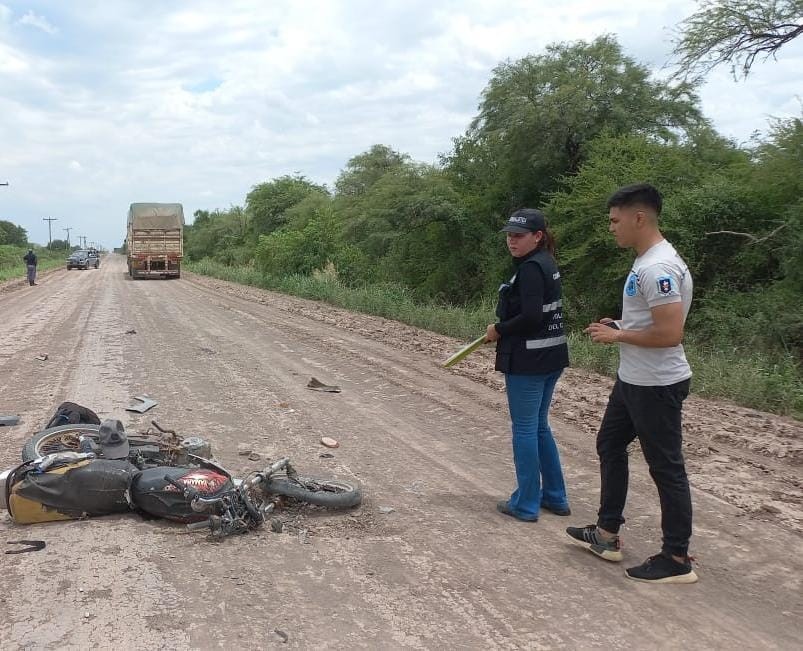 Alrededor de las 12:30 horas, los agentes constataron un Siniestro Fatal en dicho lugar, siendo participe una Motocicleta YAMAHA, Modelo YBR, 125 color Guiado por NUÑEZ ALEJANDRO MATIAS de 29 años, quien se encontraba sin singos Vitales, quien por motivos que se trara de establecer colisionó con un Camión con acoplado, marca IVECO modelo FIAT, conducido por un hombre de 50,quien resultó ileso.