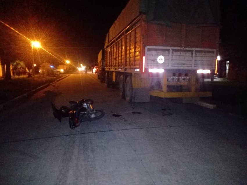 El siniestro vial se registró en calle Monteagudo, entre Jujuy y Entre Ríos, a la 03:00 horas de este domingo 1 de enero y tuvo como partícipes una motocicleta MOTOMEL DLX 110cc, guiada por un joven de 20 años, acompañado de un ciudadano de 20 años, quienes colisionaron contra un acoplado, enganchado a un camión MERCEDES BENZ 1633, propiedad de un hombre de 49 años, que se hallaba estacionado en el lugar.