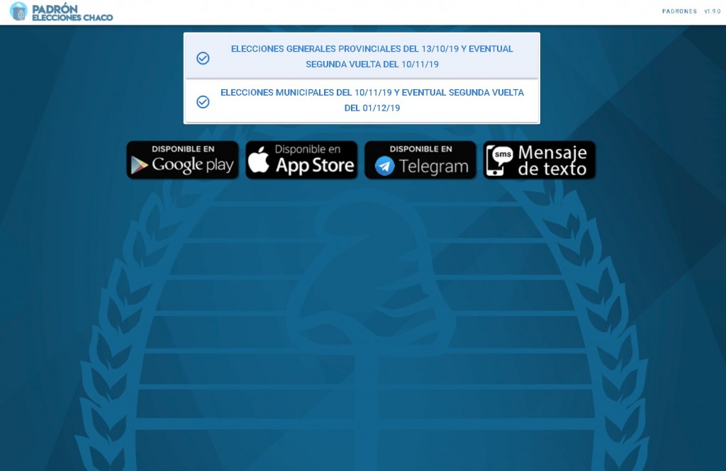 El padrón incluye a 941.935 electores habilitados por el Tribunal Electoral del Chaco. Al ingresar el número de DNI y sexo en la página, el sistema arroja la escuela donde se vota, mesa y orden de lista. Los resultados arrojados serán los mismos en caso de que exista segunda vuelta en cualquiera de las elecciones.