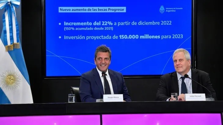 Este martes, los ministros de Economía y de Educación de la Nación, Sergio Massa y Jaime Perczyk, respectivamente, anunciaron un aumento del 22 por ciento para las Becas Progresar.