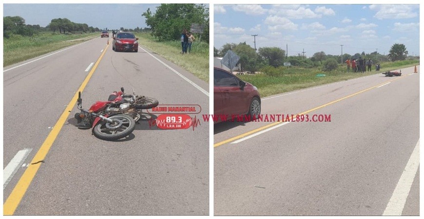 El siniestro tuvo lugar en Ruta Nacional Nº 95 Km 1000, alrededor de las 12:45 horas, siendo partícipes una motocicleta Suzuki, 125CC, color rojo, motor n° 157FMI-2*A1P49824*, chasis n° LC6PCJK61B0805873 conducida por CASTAÑO CRISTIAN DANIEL de 24 años, quien resultó lesionado. Y un automóvil Ford Fiesta, DOMINIO AA242DI COLOR BORDO, conducido por CHIABRERO JAVIER HUMBERTO de 45 años, con domicilio en Villa Ángela.
