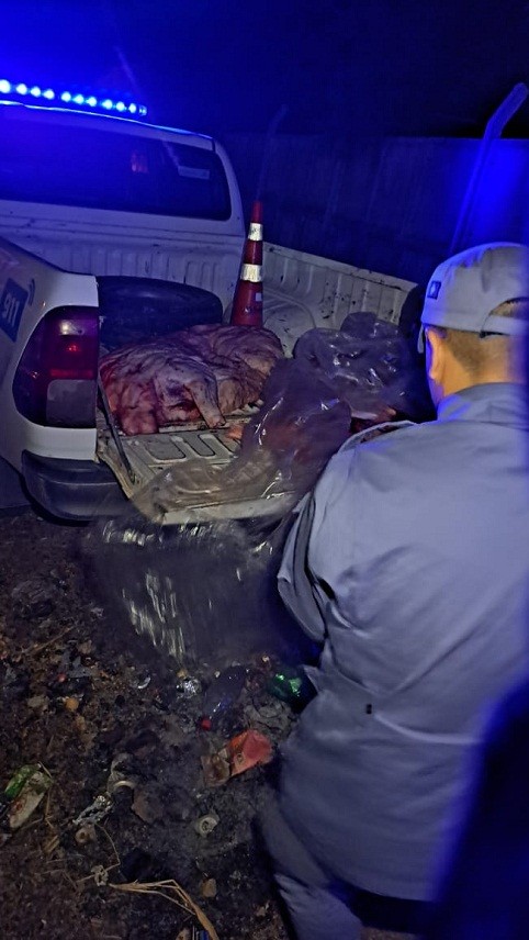 Se procedió a la conducción del vehículo y sus ocupantes hacia la comisaria. Además, consultado vía telefónica con Dra. Mabel Pecovich (Dirección de Ganadería de Provincia), dispuso se notifique infracción a la Ley de Carne N°3497, posteriormente al secuestro e incineración del producto carneo por no contar con las condiciones de higiene para consumo humano.