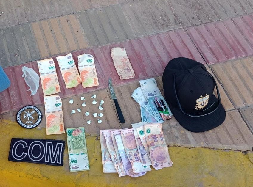 Por tal motivo, se solicitó la colaboración del personal de Drogas, quienes realizaron la prueba de campo arrojando como resultado cocaína con un peso de 7,9 gramos. Además hallaron un cuchillo, un celular y la suma de $ 5920.