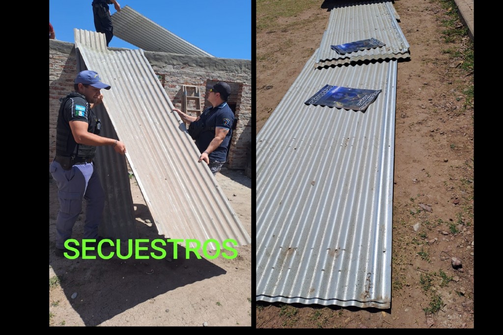 El miércoles por la mañana se toma conocimiento a través de Denuncia de la sustracción de chapas colocadas en un galpón, siendo propiedad de un ciudadano de 68 años, domiciliado en esta localidad . Seguidamente se comisiono personal de Servicio externo y la guardia de prevención a tareas investigativas, en la cual establecen que dos sujetos estaban llevando y colocando chapas en la estructura de una vivienda.
