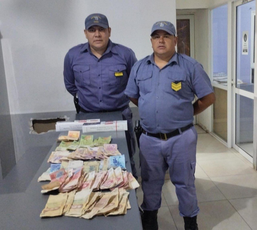 Percatándose de esta situación, un móvil Policía que se hallaba de recorrida y con la colaboración de otros móviles que también se hallaban cerca,  persiguen a este sujeto logrando demorarlo y constatando que tenia en su poder la suma de $14.000 (Pesos catorce mil) en efectivo y (02) cartones de cigarrillos.