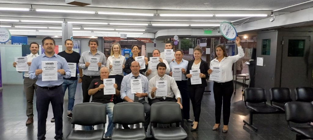 Desde la Secciónal  Presidencia Roque Peña el secretario General Walter Barón junto a su  secretario adjunto Sergio Viskovich, el secretario de acción social y deportes Gabriel  clavero, Alfredo Pedro crivoi secretario de administración y los miembros del secretariado de Secciónal, nos informan del 100% de acatamiento a la medida de fuerza dictada por el secretariado Naciónal, también destaca el enorme  acompañamiento de la gran  familia bancaria .