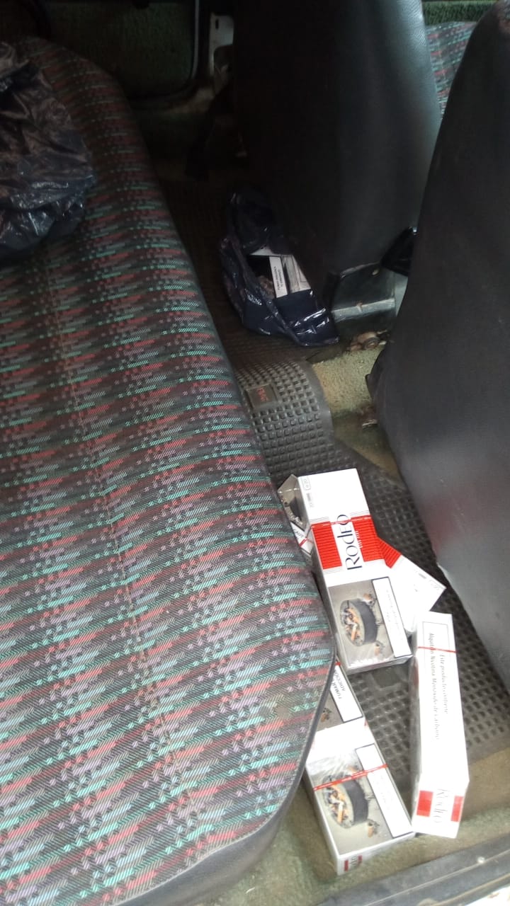 Mientras miraban el rodado encontraron 10 brezas de cigarrillos marca Rodeo, sin aval aduanero. Estaban ocultos debajo de los asientos, trasero y delantero.