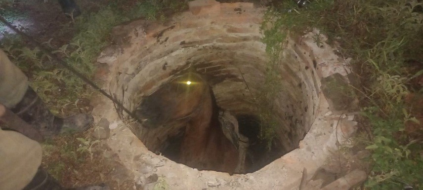 Partió al lugar una dotación quienes constataron la veracidad de lo informado, tratándose de un animal equino macho, pelaje tostado en el interior de un pozo de 3 metros  de profundidad y 1.5 metros de diámetro, calzado con ladrillos y con agua.