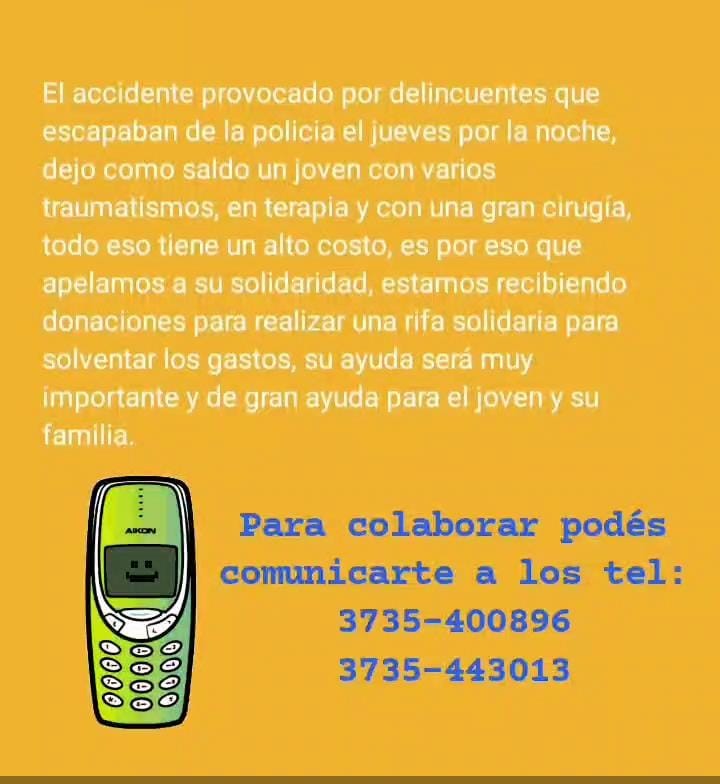 Esta mañana en comunicación telefónica con #LaMañanaDeManantial, Giorgina Ortiz, hermana de Rodolfo. El joven que el jueves pasado, fue atropellado por delincuentes cuando escapan de la policía, informó que están recibiendo donaciones para llevar adelante la venta de un Bono Solidario que les permita recaudar fondos y solventar los gastos de la cirugía e internación.