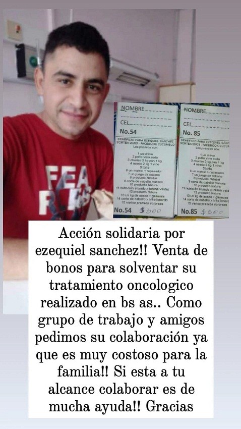 Por lo que indicó que él junto a sus compañeros de trabajo, sacaron a la venta sacaron un bono solidario con quince premios que se estará sorteando en la página de Cucumelo Producciones el próximo 20 de marzo y tiene un costo de 500 pesos. Y todos los que deseen adquirirlo y colaborar en esta situación tan compleja para Ezequiel y su familia, se pueden contactar al celular 3735- 633752.