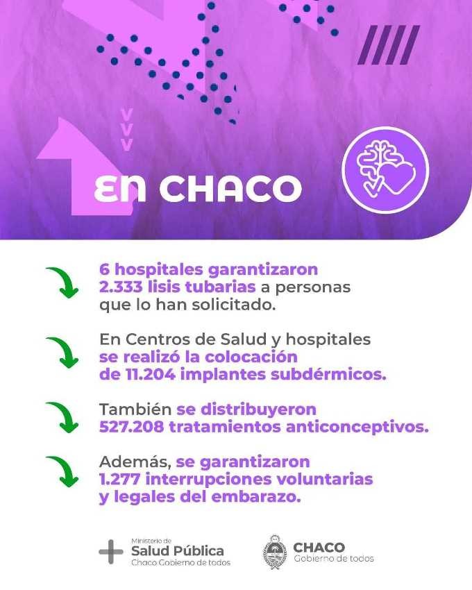 En Chaco, al menos 6 hospitales garantizaron 2333 lisis tubarias a personas que lo han solicitado. Cabe destacar que se trata de un método anticonceptivo irreversible que se realiza a través de una cirugía en las trompas uterinas.