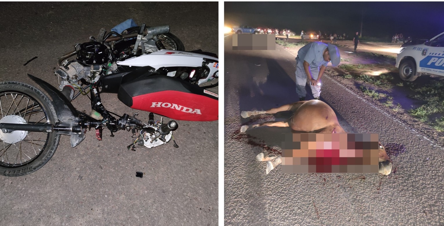 Circulaban dos motocicleta 110 y colisionaron contra un equino