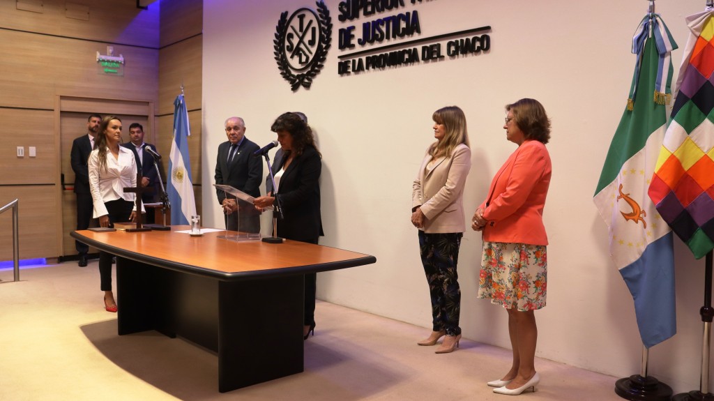 Rocío Soledad Carrera juró como asesora de niñas, niños y adolescentes Nº 1 de Villa Ángela en un acto llevado adelante en el salón auditorio del Superior Tribunal de Justicia del Chaco.