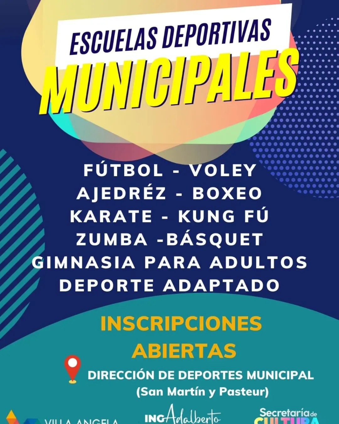 El Municipio de Villa Ángela, a través de la Secretaría de Cultura, Turismo y Deportes, invita a toda la comunidad a inscribirse a las distintas disciplinas deportivas que se ofrecen de forma gratuita en las escuelas municipales