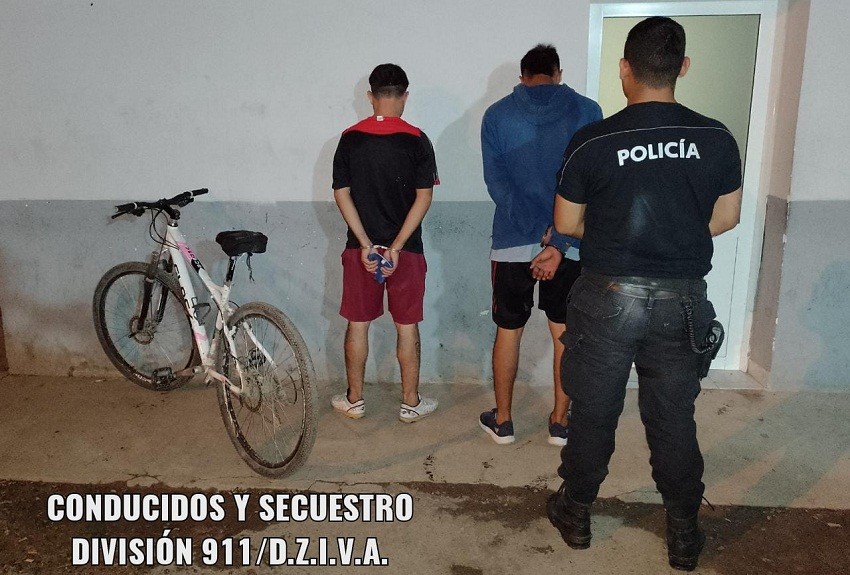 Los uniformados, rápidamente acuden hasta el lugar donde estos dos sujetos al notar la presencia policial intentan darse a la fuga no logrando su cometido. Se trata de dos ciudadanos de 22 y 23 años que fueron llevados junto a la bicicleta rodado 29 a la comisaría jurisdiccional.