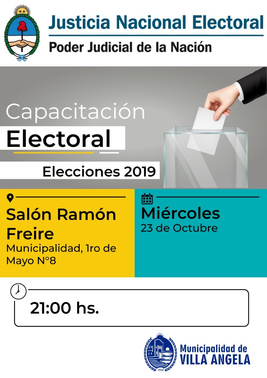 En comunicación con Alberto Svenson, expresó que el 23 de octubre a las 20 hs en el salón Ramon Freire en el Palacio Municipal Villangelense se realizará la capacitación electoral.