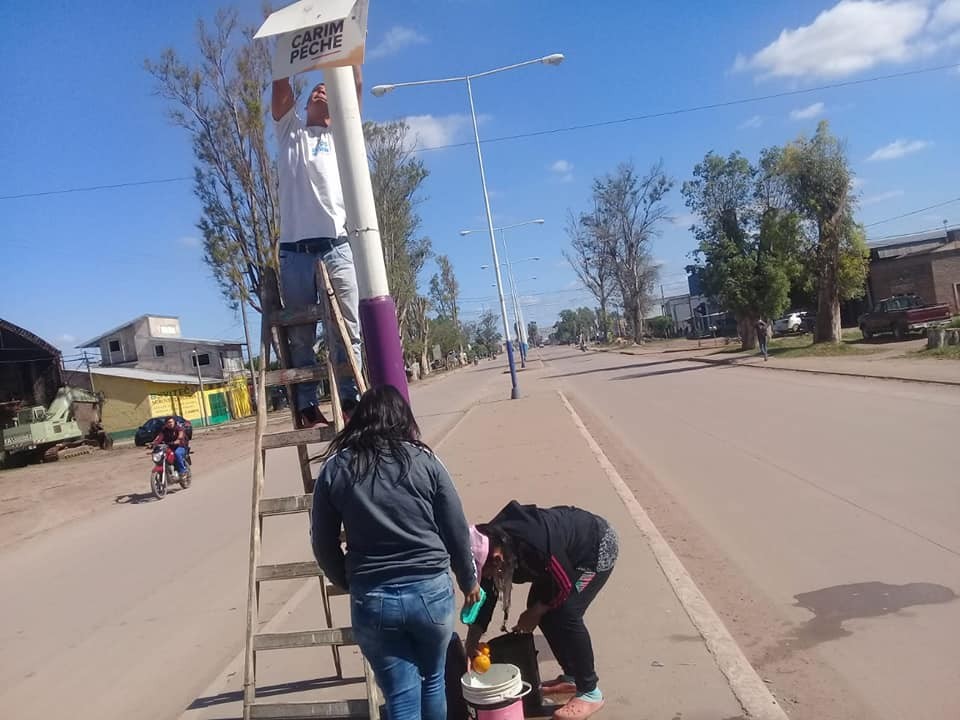 La municipalidad de Villa Ángela, a cargo del intendente Adalberto Papp, y a través de la secretaría de servicios públicos, realizó esta tarde la limpieza de los postes de alumbrado en el acceso Norte, donde se removieron distintos carteles políticos utilizados durante la campaña.