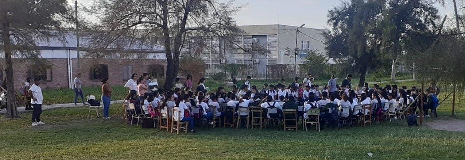 Hoy fue el último día que trabajamos presencial con los chicos, en una clase abierta en el predio del complejo bajo los árboles, todos juntos hasta las 10:30 horas, porque ingresar al SUM ya es imposible por el calor. Y hoy se quemó la térmica que tenemos en el pilar para los salones del IESVA, se prendió fuego”.