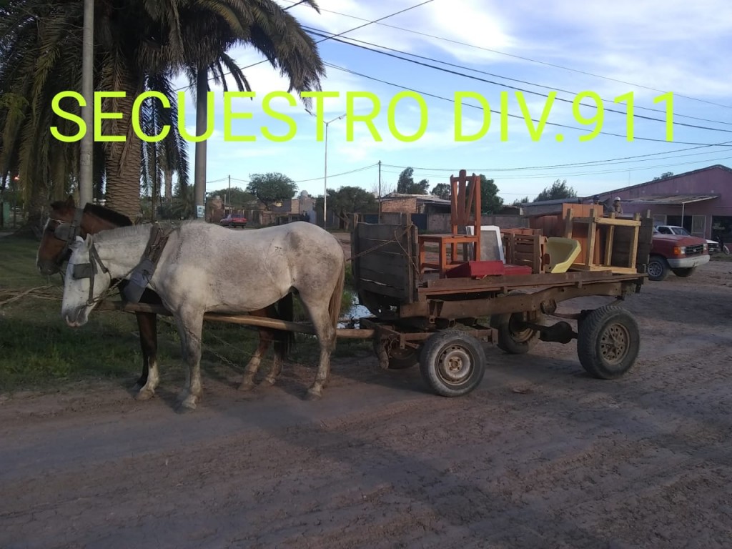 Colaboraron el personal de Comisaría Primera y el Departamento Rural quienes proceden a trasladar el carro y equinos para su resguardo.