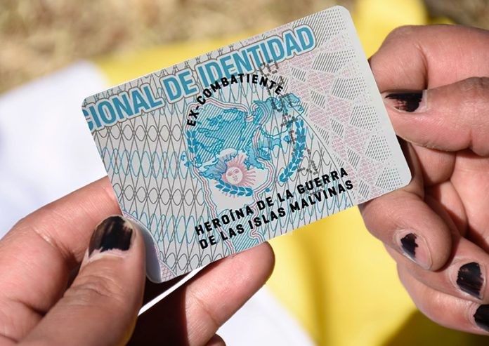 “Aquellas personas que acrediten la calidad de ex combatiente de la guerra de las Islas Malvinas, llevarán en el DNI el siguiente distintivo: ‘EX COMBATIENTE, HEROÍNA DE LA GUERRA DE LAS ISLAS MALVINAS’, ‘EX COMBATIENTE, HÉROE DE LA GUERRA DE LAS ISLAS MALVINAS'”, puntualiza la disposición.