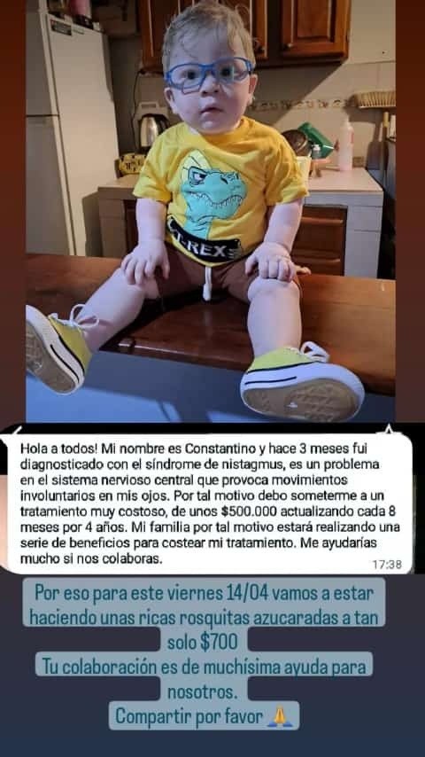 “Su cirugía por este mes, nos sale 500 mil pesos y debemos recaudar este monto, ya que en el mes de mayo, nos aumentarían 100 mil pesos más. Es un precio que se va ir actualizando cada año y Constantino, se tiene que hacer esta cirugía por cuatro años cada ocho meses”, explicó. Para luego informar que mañana viernes 14 de abril por la tarde, estarán realizando una venta de rosquitas a 700 pesos la docena.