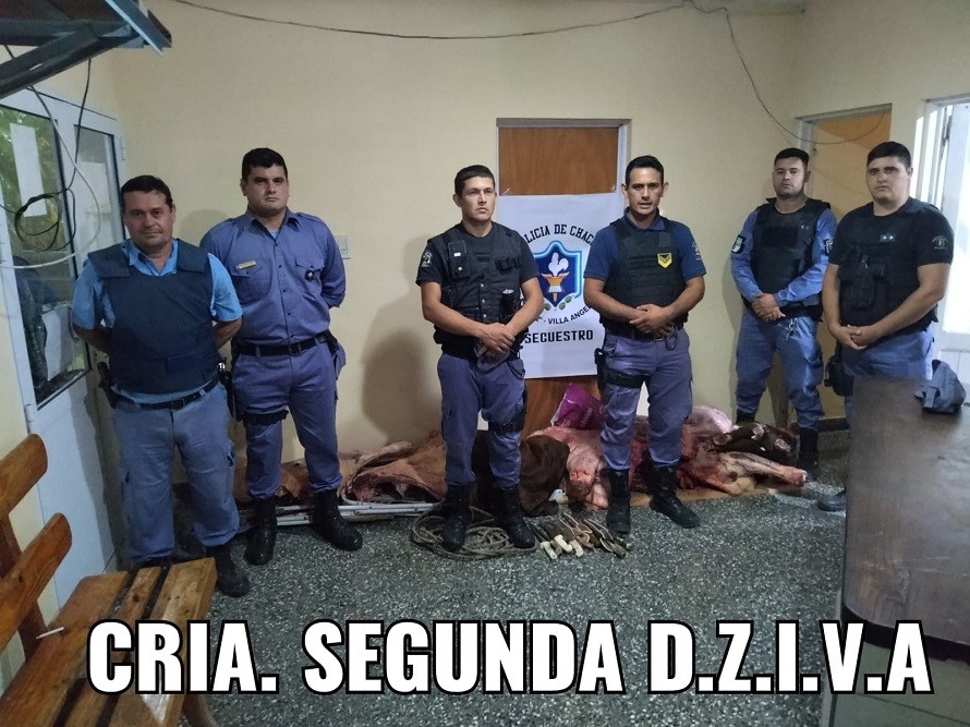 Este Domingo en horas de la madrugada, personal de Comisaría Segunda , en circunstancias de cumplimentar con el operativo conjuntamente con personal del (Depto. Seg. Rural local), interceptan el paso de una camioneta conducida por un masculino de (59) años, acompañado de dos masculinos mayores de edad. Los mismos transportaban en la caja del rodado, un animal vacuno categoría Vaquilla faenado, y además, tenían en su poder 7 cuchillos tamaño grande y 2 Chairá sin contar con documentación pertinentes.