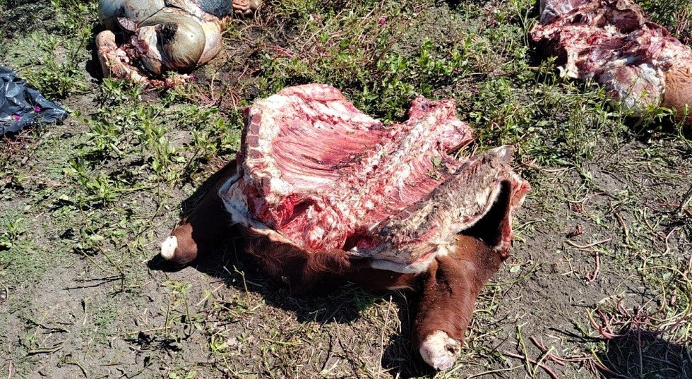 Solicitan presencia Policial Vía Telefónica un ciudadano de 67 años en Lote 14, virtud desconocidos habrían faenado un animal vacuno de su propiedad.