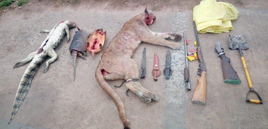 Cerca de las 17 de este lunes, los agentes de la Comisaría realizaban un operativo de prevención. Así, se cruzaron con dos motocicletas, tres hombres y un niño. Los ciudadanos transportaban dos bolsas que fueron revisadas y notaron cuatro animales sin vida: un puma, un yacaré y dos tatús.
