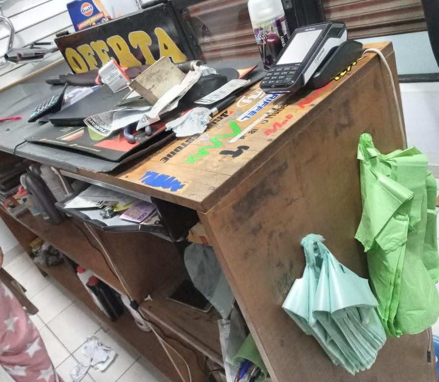 Se hizo presente de forma inmediata al lugar y constat� la puerta met�lica del taller forzada y en el interior, sus elementos de trabajo revueltos. Tambi�n la caja registradora forzada� y tirada en el piso. Y realizado el recorrido por las �instalaciones, �no constat� faltante� de objetos. Pero hizo constar que� cuenta con c�maras de seguridad, donde qued� registrado la filmaci�n de los autores, reconociendo a uno de ellos como "MONITO" y otro masculino de buzo color �blanco, pantal�n largo, contextura f�sica delgada, altura 1.80 m. aprox., a quien no reconoci�.