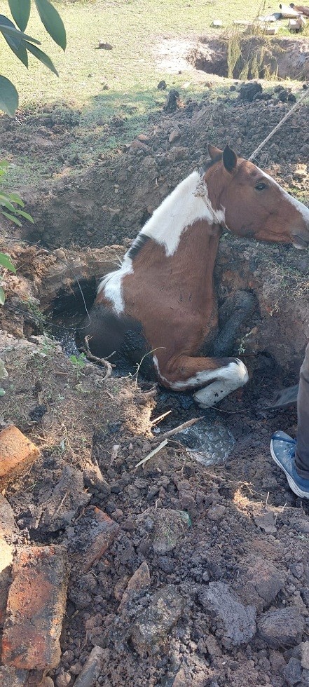 Villa Ángela: BOMBEROS AYUDARON A RECATAR UNA YEGUA QUE CAYÓ EN UN POZO CON AGUA Y DESECHOS