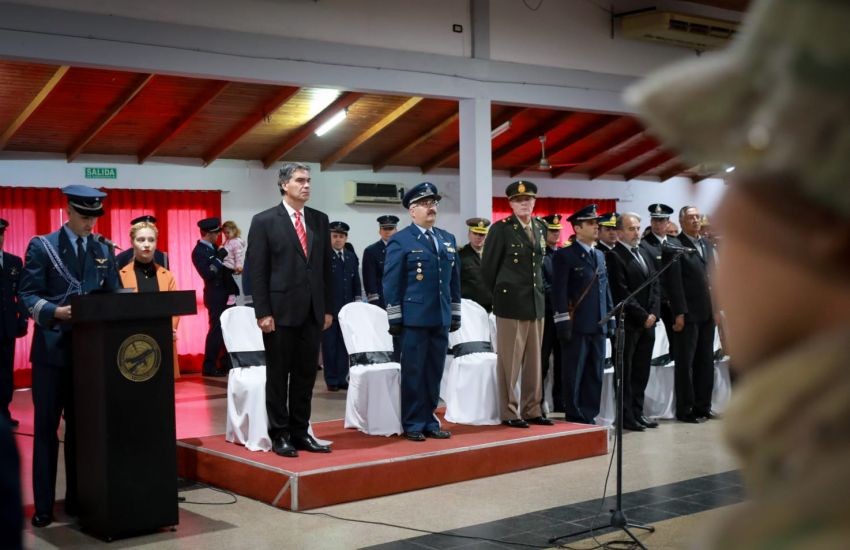 En ese sentido recordó que hoy la Fuerza cuenta con 390 agentes y destacó el rol que desempeñan en la provincia y lo que significa no solo en la defensa de la Patria, sino también en el avance de la tecnología. “Hemos propiciado un sistema de cooperación con la fuerza aérea a través de lo que significó la construcción del radar y el plan de radarización que tiene que ver con el desarrollo de radares a través de INVAP para la protección del espacio aéreo argentino”, contó.