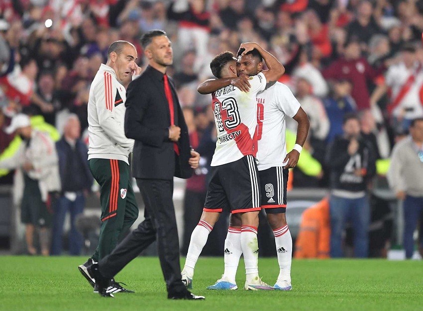 River Plate le ganó a Boca Juniors por 1 a 0 con un gol señalado de tiro penal por el colombiano Miguel Borja. Fue en el segundo minuto de descuento y el superclásico terminó en una batalla campal entre los futbolistas de ambos equipos. Los visitantes se molestaron por la forma de festejar la conquista de algunos jugadores "millonarios" y derivó en tres expulsados por equipo (dos suplentes del local) y el técnico "xeneize" Jorge Almirón.