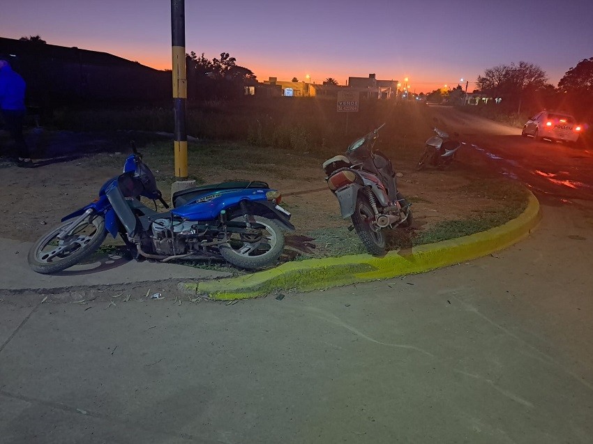 Constituida la prevención se entrevistan con el ciudadano M. T. de 19 años quien resultó ileso y circulaba en Motocicleta Corven Energy, azul con dominio A009GOZ, y por la otra parte, el ciudadano S.G.D. de 39 años, quien resultó lesionado, y se trasladaba en motocicleta Motomel Blitz 110 cc., color gris y negro sin dominio colocado. Por razones que se tratan de establecer, colisionaron entre sí.