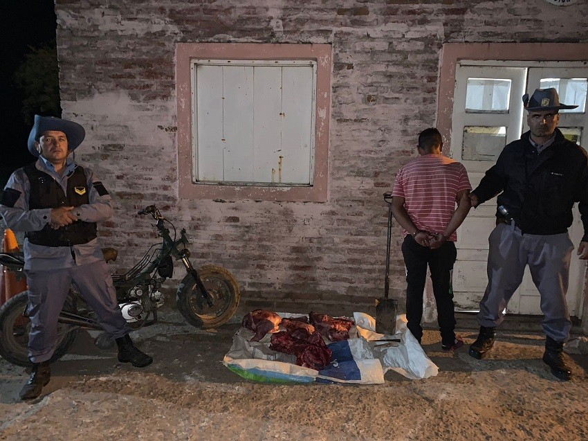 Además secuestraron 80 kg., de carne, una motocicleta marca Gilera, 110 c.c., una pala de punta, marca Bellota y un cuchillo marca Zorro, cabo de madera.