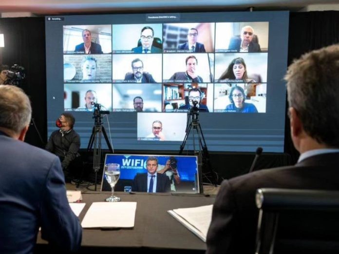 El ministro de Economía, Sergio Massa, y el presidente del Ente Nacional de Comunicaciones (Enacom), Claudio Ambrosini, anunciaron la asignación de la banda de espectro para el uso y desarrollo de la tecnología Wifi 6 con la presencia de representantes de las empresas Meta, Intel, Qualcomm, Amazon, Dynamic Spectrum Alliance (DSA), Broadcom, Cisco, HPE, Microsoft, Apple, Google y Federated Wireless.