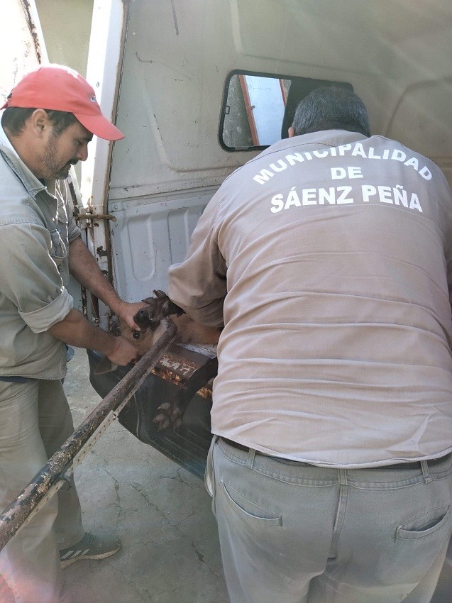 De forma inmediata se dirigió al lugar una dotación en móvil de rescate, quienes procedieron a la captura del animal y consultado al personal del Complejo Ecológico de Sáenz Peña, les solicitaron que se mantenga en resguardo para su traslado.