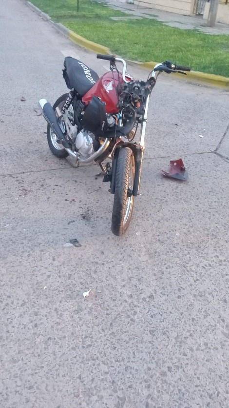 Se trata de un joven de 24 años identificado como B.P.N. que circulaba en una motocicleta HONDA, TITAN, 150 CC., color roja, sin dominio, el cual colisionó en calle Urquiza y Monteagudo contra una camioneta FORD F100, color gris, con dominio AOY-789, conducida por F.I.R.O de 45 años que resultó ileso.