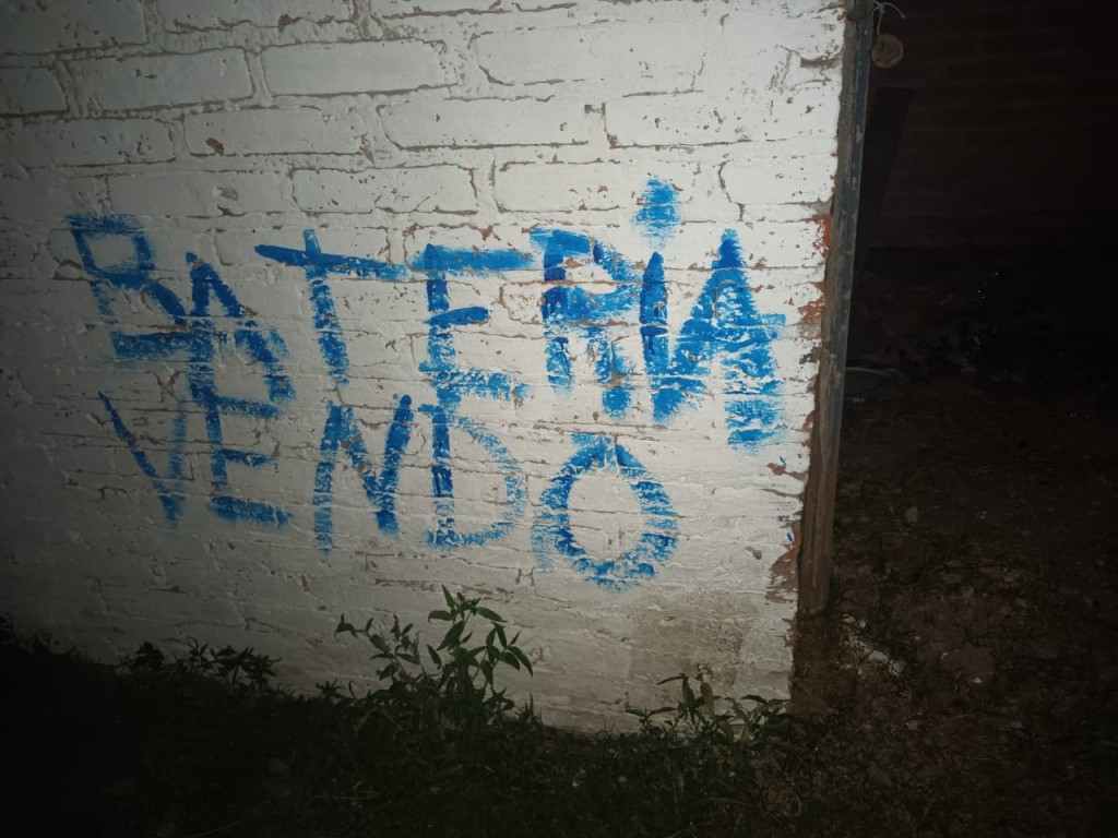 Anoche a las 23:20 horas, el ciudadano C. denunció que tomo conocimiento por terceros que ciudadano que conoce como W. X. V., con quien hace tiempo viene teniendo inconvenientes, pinto la pared de su domicilio el lema “BATERIA VENDO”.