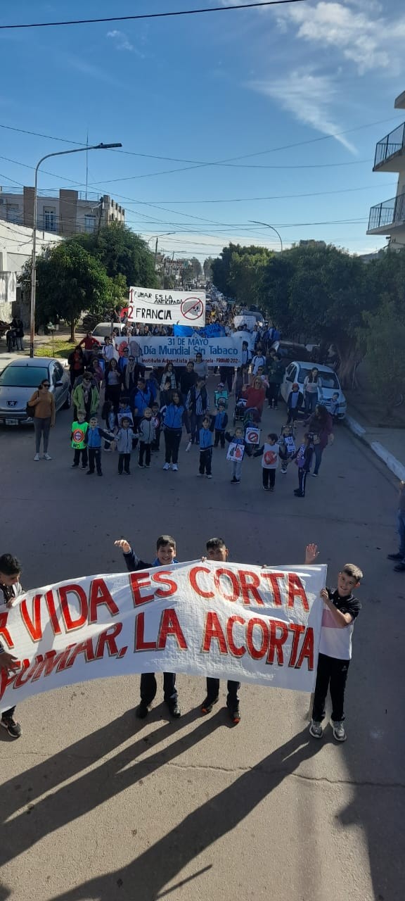Esta mañana, en el cierre de la marcha “Libre de Humos”, el Director de la Escuela Adventista, indicó que es una actividad que se realiza el 31 de mayo en el “Día Mundial Sin Tabaco”, acompañados con todos los alumnos, familiares y abuelos de dicha institución para lograr concientizar a la comunidad de Villa Ángela, sobre el no uso del tabaco.