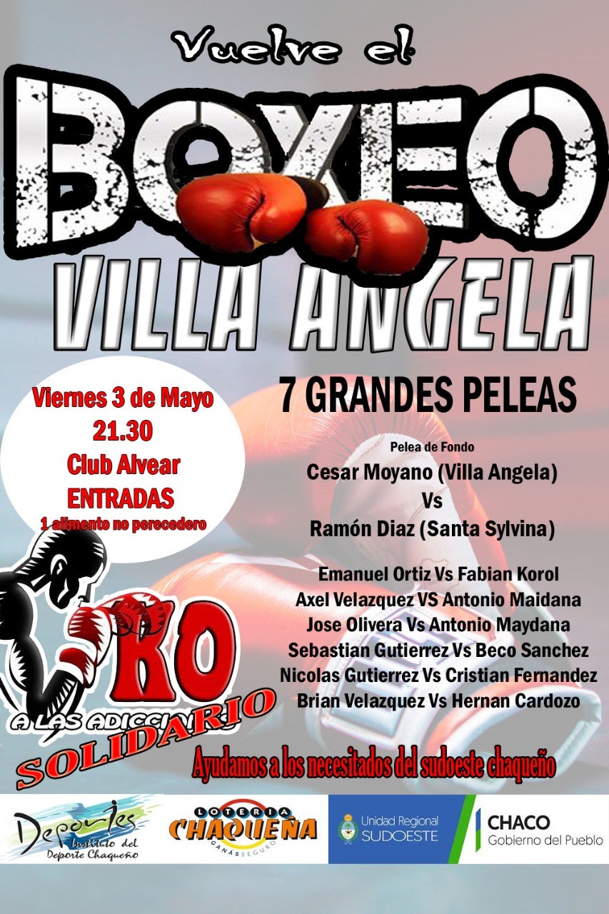 El Programa Knockout a las Adicciones, propone nuevamente en la ciudad este encuentro de Boxeo, en donde la entrada será un alimento NO PERECEDERO, para que a travéz de la ASOCIACIÓN CHAQUEÑA DE BOXEO, se brinde ayuda a las familias afectadas por las inundaciones en el Sudoeste Chaqueño.
