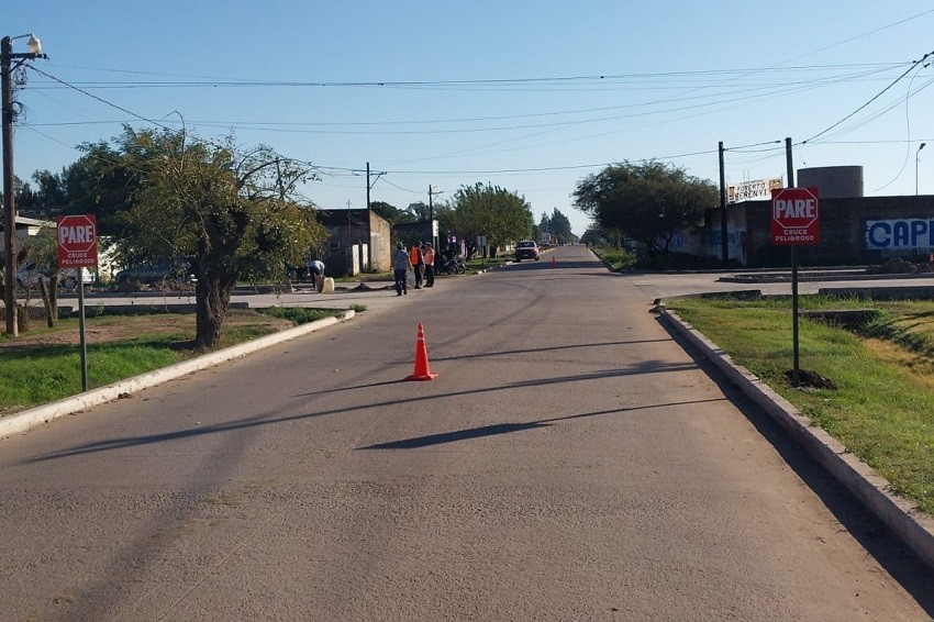 Colocación de cartelería y señalización de prevención en Wenceslao Espinoza y Lugones. Se ruega a la comunidad transitar con precaución.