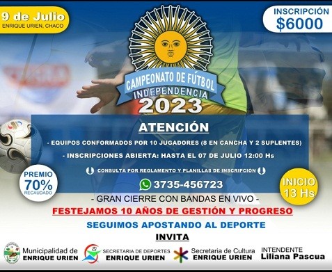 En dicha oportunidad, Liliana Pascua indicó que “este es un campeonato que nosotros los venimos realizando hace varios años a nivel regional, todos los 9 de julio ya que lo hemos denominado, Campeonato Independencia y coincide con un año más de gestión, ya que yo asumí el 9 de julio de 2013. Y este años voy a estar cumpliendo 10 años de gestión frente a la intendencia”.