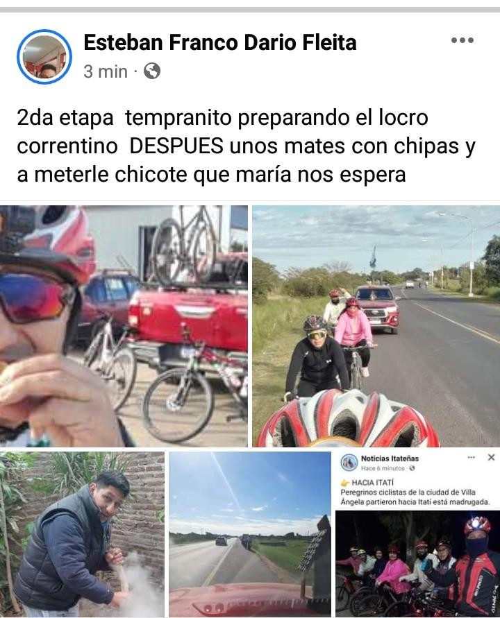 “2da., etapa, tempranito preparando el locro correntino DESPUES unos mates con chipas y a a meterle chicote que maría nos espera”, posteó hace instantes en su red social de facebok Esteban Franco Dario Fleita.